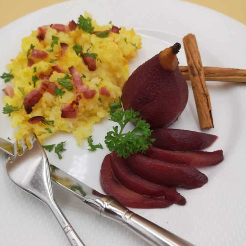 Röstis & poires au vin rouge